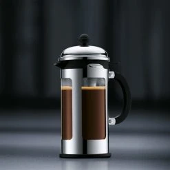 Chambord pressbryggare frĂ„n Bodum Ă€r en klassiker. Man började producera pressbryggaren redan pĂ„ 1950 talet och man har fortsatt producera bryggaren samt utvecklat designen genom Ă„ren.Â