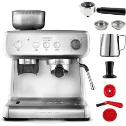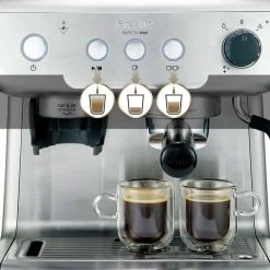 Med espressomaskinen frÄn Breville blir du en barista i ditt eget kök och du kommer kunna servera det mest vÀlsmakande kaffet till bÄde dig sjÀlv och dina gÀster. Maskinen har mÄnga fördelar och de förprogrammerade instÀllningarna för enkel eller dubbel espresso Àr endast en av mÄnga fördelar.