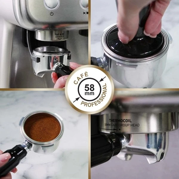 Espressomaskinen Àr utrustad med ett effektivt och kraftigt Ängrör för mjölkskumning, vilket gör det möjligt att servera en latte eller cappuccino som en Àkta barista. Tack vare förfiltreringen, som fuktar kaffet innan vattnet pressas igenom, fÄr du en fyllig och aromatisk smak. Med andra ord fÄr du optimal malning av kaffet, vilket i slutÀndan bidrar till den bÀsta kaffesmaken.