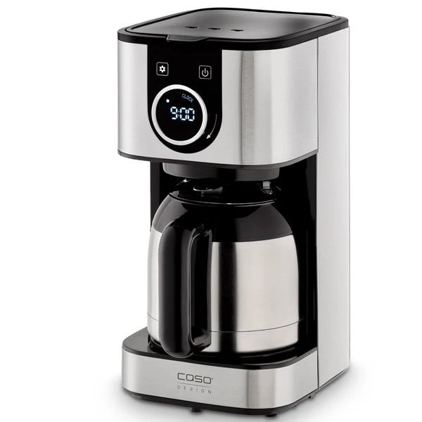 Denna kaffemaskin från tyska Caso har en vacker och modern design. CS1874 är enkel att använda via en praktisk vridknapp och kan brygga upp till 10 koppar. Den rymmer 1,2 liter vatten. Kaffet bryggs på perfekt temperatur och med Aroma-PLUS-funktionen blir vattnet jämnt fördelat över kaffet, vilket säkerställer perfekt resultat. Tack vare den smarta timern kan du också ställa in när du vill att kaffet ska vara klart! Maskinen har ett integrerat filter och termoskanna som håller kaffet varmt under lång tid.