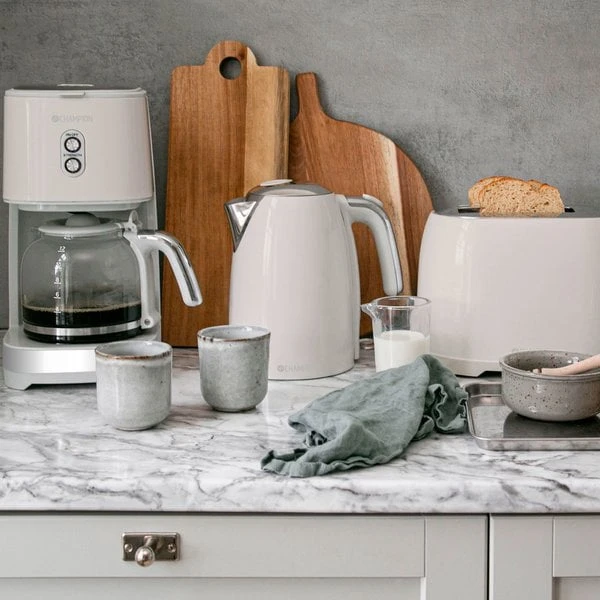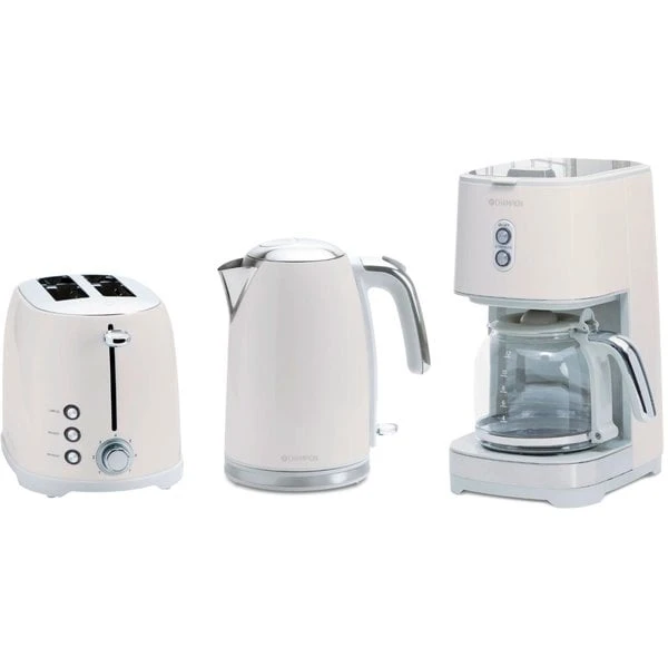 LĂ„t morgonstund ha guld i mun med det hĂ€r frukostpaketet i serien Creme White frĂ„n Champion. I paketet ingĂ„r en brödrost med plats för tvĂ„ skivor, en vattenkokare och en kaffekokare â samtliga delar i stilren retrodesign med en mjuk, cremevit fĂ€rgsĂ€ttning. Brygg vĂ€lsmakande te och kaffe, rosta ditt bröd gyllenbrunt och duka upp pĂ„ bordet. Perfekta förutsĂ€ttningar för att starta dagen ihop med hela familjen.