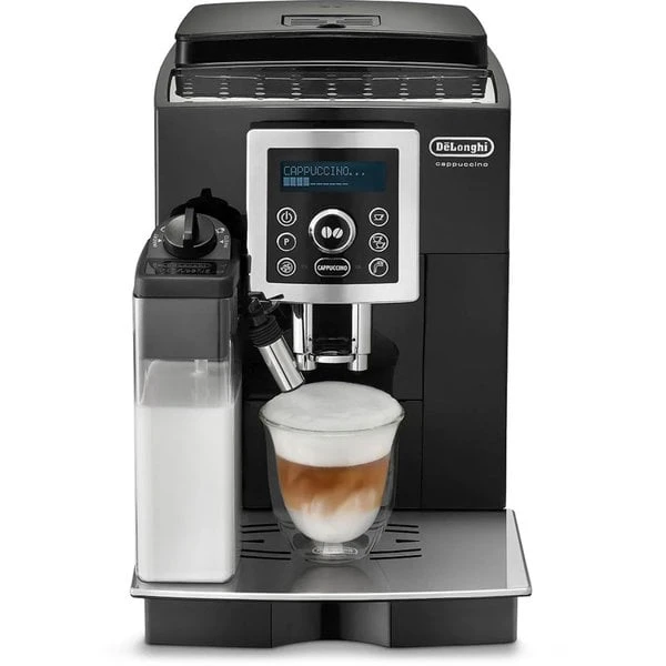 Njut av en perfekt balanserad kopp kaffe med den hĂ€r kaffemaskinen frĂ„n Delonghi. Att anpassa hur man önskar sitt kaffe har inte varit lĂ€ttare, vĂ€lj mellan en liten, mellan eller stor kopp. Man kan ha i antingen kaffebönor eller malt kaffe. Maskinen indikerar för en nĂ€r vattnet Ă€r slut och mĂ„ste fyllas pĂ„ och har ocksĂ„ inbyggd energi sparare.Â