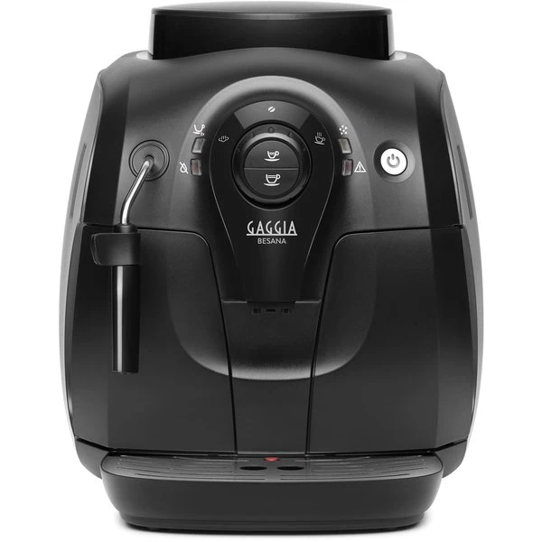 LĂ€tt och enkelt. Det Ă€r kort och gott vad som kan sĂ€gas om den kompakta Besana espressomaskinen frĂ„n italienska Gaggia. Den enkla anvĂ€ndningen utgĂ„r frĂ„n vredet och knappen pĂ„ fronten. SĂ„ blir det inte mycket enklare att sĂ€tta igĂ„ng maskinen. Det finns till och med en kom-ihĂ„g-funktion, sĂ„ att du kan stĂ€lla in din espresso precis som du önskar den. Resultatet blir lika gott varje gĂ„ng! Föredrar du mjölk i kaffet Ă€r Besana utrustad med den patenterade Panarello-steamern. Enkelt kan du dĂ€rför fĂ„ den varma, krĂ€miga mjölken som du gillar bĂ€st. Sist men inte mist Ă€r den eleganta espressomaskinen utrustad med en 100 % keramisk kaffekvarn. Denna kan justeras, sĂ„ att resultatet blir precis som du önskar.Â