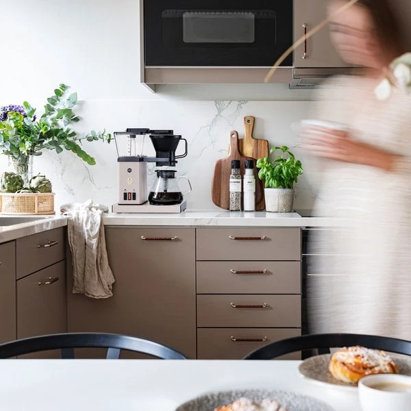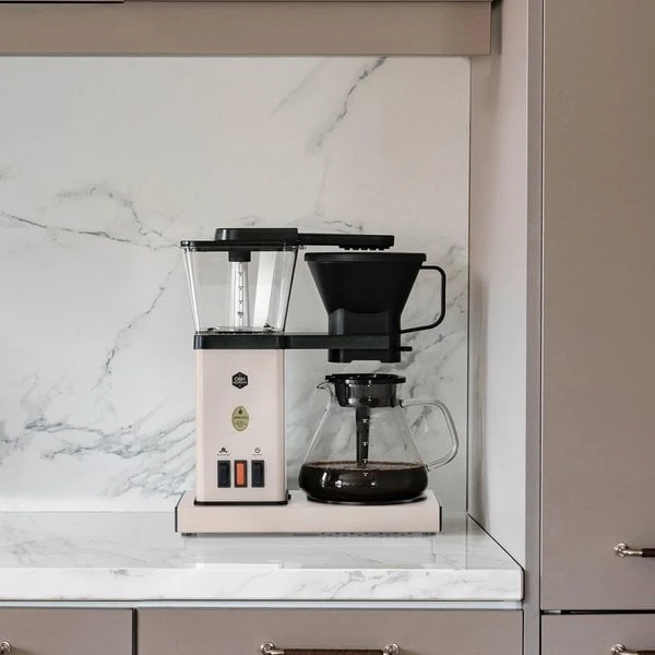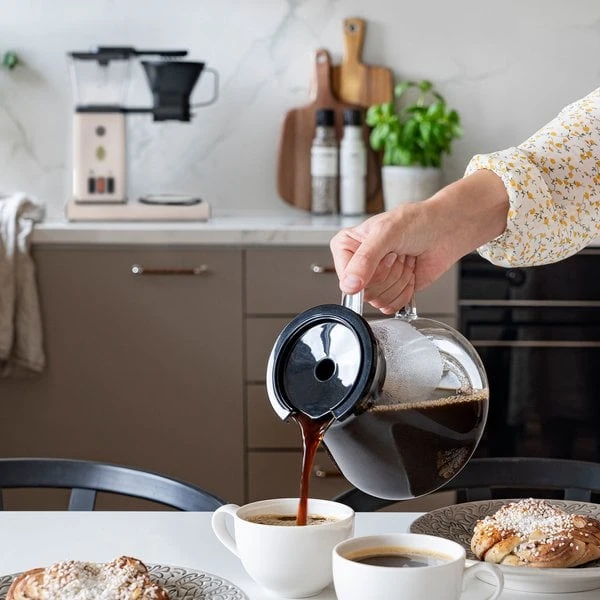 Blooming Coffee Maker Prime kaffebryggare har en snygg design som passar alla kök. Den har ett ergonomiskt handtag och en droppfri pip som gör det lÀtt att hÀlla upp kaffet. Kaffebryggaren har ocksÄ ett integrerat sladdförvaringssystem som hÄller din bÀnk fri frÄn röra.