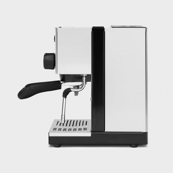 Denna snygga espressomaskin Àr tillverkad med omsorg och innehar hög kvalitet pÄ bÄde material och funktion. Den yttre ytan pÄ espressomaskinen Àr borstad i rostfritt stÄl och toppen av espressomaskinen fungerar som en vÀrmare. Den svarta ramen Àr pulverlackerat jÀrn. För bÀsta underhÄll, se alltid till att det hÄlls torrt. Speciellt under droppbrickan Àr det viktigt att det inte finns nÄgot vatten för att undvika korrosion. Vatten kan fyllas uppifrÄn i det svarta locket, och Àven nÀr maskinen placeras under ett köksskÄp finns det inga problem att fÄ utrymme för vattenpÄfyllning utan att flytta maskinen.