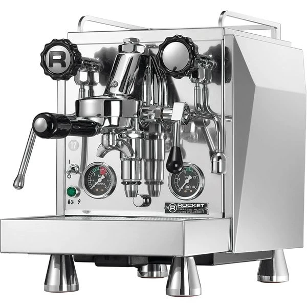 UppnÄ lika gott kaffe som pÄ kaféet utan att behöva lÀmna hemmet. Med Rocket Espresso blir detta verklighet samtidigt som du garanterar högsta kvalité. Giotto Cronometro espressomaskinen finns i typerna R och V. Med typ R Espressomaskin fÄr du funktioner som normalt bara finns i hos de stora kommersiella maskinerna. Denna kaffemaskin har en digital timer, PID temperaturreglering och isolerande varmvattensbehÄllare.