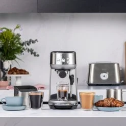 En bra dag startar med en riktigt god kopp nybryggt kaffe i handen, sĂ„ varför inte unna dig det lilla extra och skaffa den hĂ€r smidiga espressomaskinen frĂ„n Sage. Tack vare ThermoJet-uppvĂ€rningen Ă€r maskinen redo att brygga pĂ„ endast tre sekunder och du kan vĂ€lja mellan bĂ„de en och tvĂ„ koppar Ă„t gĂ„ngen. The Bambino espressomaskin Ă€r utformad med “the 4 key formula”, vilket innebĂ€r att maskinen sjĂ€lv anvĂ€nder den exakta mĂ€ngden kaffe för din bryggning, vĂ€rmer upp vattnet till ett exakt gradtal, optimerar vattentrycket och dĂ€refter skummar mjölken med precision till just ditt bryggval. Med den hĂ€r tekniken fĂ„r du garanterat bra resultat varje gĂ„ng. FĂ„ att fĂ„ fram aromerna pĂ„ bĂ€sta sĂ€tt Ă€r The Bambino Ă€r Ă€ven utrustad med en pre-infusion-funktion, vilket innebĂ€r att kaffebönorna blötlĂ€ggs innan bryggningen och dĂ€rmed avger extra mycket smak till ditt kaffe.Â