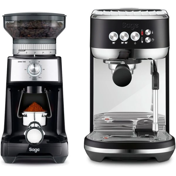 Bambino Plus espressomaskin frÄn Sage Àr utrustad med elektronisk PID-reglering och du kan sjÀlv stÀlla in önskad temperatur. Utöver detta har den ocksÄ en integrerad mjölkskummare, som ger ditt fÀrdiga kaffe en extra touch. The Dose Control Pro kaffekvarn frÄn Sage har 60 olika malningsgrader. Du kan enkelt stÀlla in tiden genom vridknappen pÄ framsidan och det Àr otroligt lÀtt att fylla pÄ med bönor. Den har en inbyggd hÄllare för bajonetten.