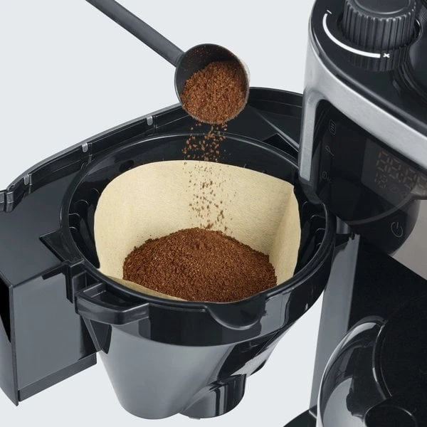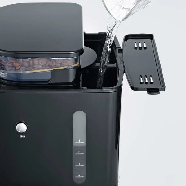 Severins nya termoskaffemaskin med inbyggd kaffekvarn har allt du behöver för lÀckert kaffe. Den gör det möjligt att justera kaffet precis efter din smak, med justerbar kaffestyrka och malningsgrad av bönorna. Maskinen brygger kaffet rakt ner i termoskannan, vilket gör att drycken hÄller sig varm i timmar. Tack vare touch-displayen Àr det lÀtt att vÀlja mellan maskinens olika funktioner. Via displayen kan du ocksÄ stÀlla in den praktiska timern och vakna till doften av nybryggt kaffe.