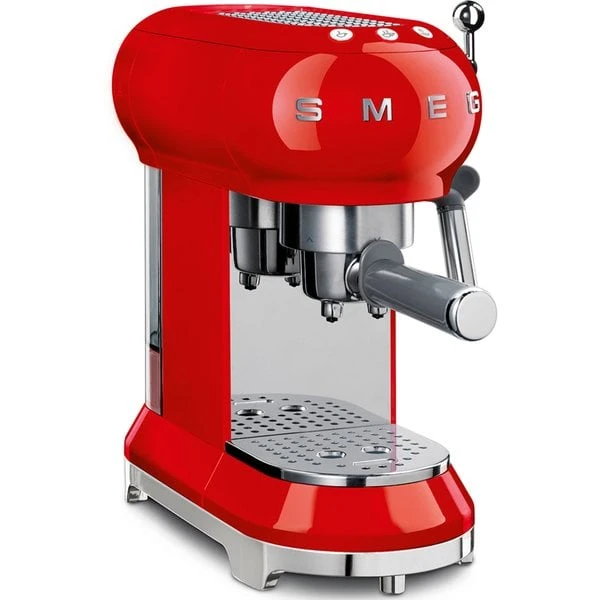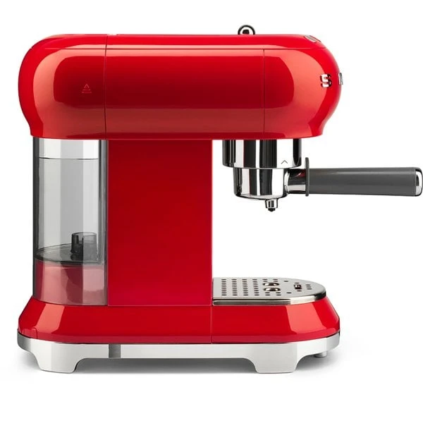En häftig espressomaskin i röd från Smeg. Precis som Smegs resterande sortiment är denna espressomaskin designad i en läcker retroinspirerad stil.