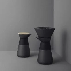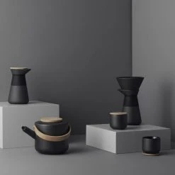 Snygg, mattsvart stengodskaffekanna med blank glasyr och bambulock frÄn Serien Theo. Theo-serien Àr en vacker serie med vackra kontraster skapade för att vÀcka sinnena.