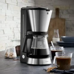 Starta dagen med en lĂ€cker och aromatisk kopp kaffe frĂ„n denna Kitchen Minis kaffebryggare frĂ„n WMF. Kaffemaskinen garanterar ett otroligt aromatiskt kaffe tack vare WMF Hot Brew-teknologi och WMF Aroma Perfection. Maskinen Ă€r tillverkat i högkvalitativt rostfritt Cromargan-stĂ„ och har en elegant och kompakt design, som passar utmĂ€rkt i de mindre köken.Â