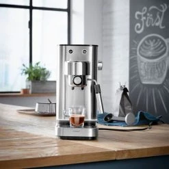 Njut av din espresso efter alla konstens regler med Lumero – WMFÂŽs traditionella, manuella espressomaskin. Espressomaskinen har ett enkelt utseende och den Ă€r enkel att anvĂ€nda med sin tydliga kontrollpanel. Ditt kaffe bryggs med ett konstant tryck pĂ„ 15 bar och du vĂ€ljer sjĂ€lv om du vill ha en eller tvĂ„ koppar, eller om du önskar din espresso enkel eller dubbel. Lumero-espressomaskinen har dessutom en integrerad mjölkskummare sĂ„ att du kan fixa ett lĂ€ckert och krĂ€migt skum till din cafĂ© latte, cappuccino eller macchiato.