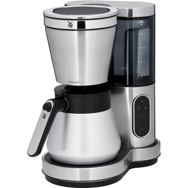 Njut av morgonkaffet, förmiddagskaffet och eftermiddagskaffet frÄn samma bryggning med den smarta Lumero kaffebryggaren med termoskanna frÄn WMF. Kaffebryggaren Àr utrustad med WMFŽs Aroma Perfection som Àr en aromakontroll, som garanterar ditt kaffes goda smak. Dessutom Àr Lumero-bryggaren designad med ett praktiskt svingbart filter och en lÀcker touch-panel dÀr du hittar alla funktioner sÄ som den inbyggda timern. Kaffebryggaren rymmer upp till 8 koppar å 125 ml kokande varmt kaffe.